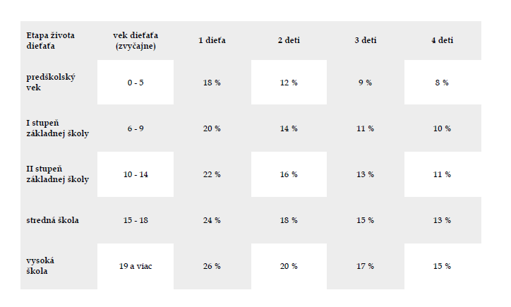 Pre určenie správnej výšky vyživovacej povinnosti je nevyhnutné tabuľku používať nasledujúcim spôsobom v uvedenom poradí:
